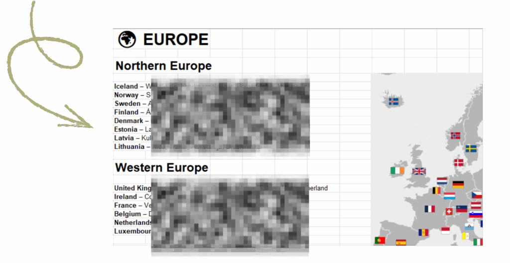 This bonus Excel file gives you four remarkable hidden gems for every country on Earth, across all continents.